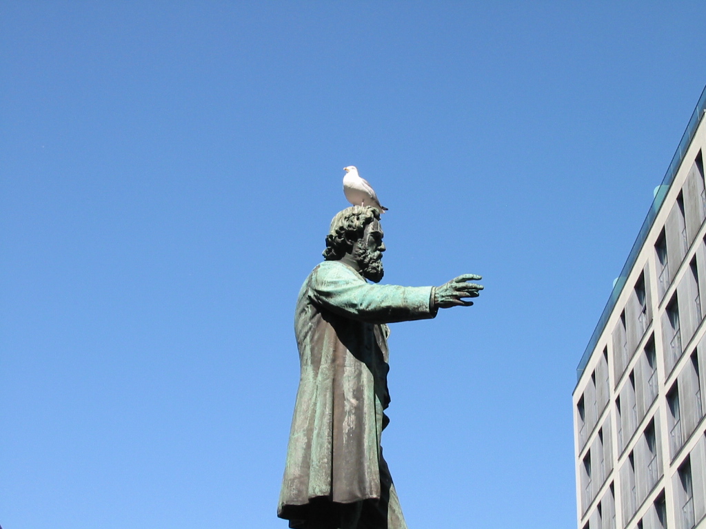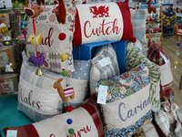 We had to run into Cardiff Central one day to get a replacement SD card for my 3DS (my tech issues didn't stop with nibbled cables, I can assure you). You get some shots of a boxed Ocarina of Time and some lower-end DSLRs and novelty cameras from CEX (taken, of course, on my novelty camera), plus some Pokémon statues from a card shop and tacky Welsh throw pillows from the local artist-y shop right next to each other in Queen's Arcade. (Can confirm that anyone can cuddle, but only Welsh girls can cwtch, and they are very good at it.) Check out that seagull perching on the statue too!