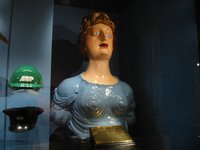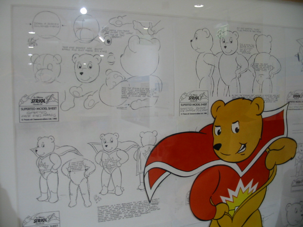 Turns out, there's places in Cardiff Caby's passed by hundreds of times and never been in! The Cardiff Museum was one, so we had a look around. Pretty neat. You can see some vintage Spillers' record sleeves (next to a fake phone with some words from local Cardiff business owners, Spillers' included, in both English and Welsh if you listen to it), neat scratchy paintings of a much different Cardiff, a rather terrifying bust of a conical boob lady, and some production sheets for SuperTed, which was a Welsh cartoon that Caby's parents were delighted to be reminded of. Apparently, it was the first British cartoon to air on the Disney Channel. Neat!